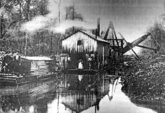 -- the photo above features the type of dredge used on the Kankakee River in the early years of 1900? A logging crew worked ahead of the dredge, cutting underbrush and trees in a 200-foot swath, as the steam-powered digger crossed the many curves of the old river, digging the "Marble Power Ditch" ten feet deep and 90 feet wide. The cut logs were piled upon the ditch banks and covered with soil or used to power the dredge. The work was finished to the Illinois state line about 1923.