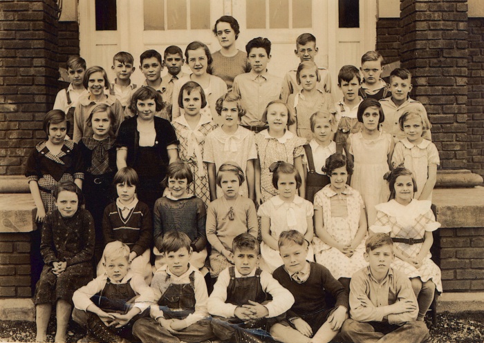 4th Row: Basil Arseneau, unidentified girl, John Childers, Millard Clark, Evelyn Love, Donald Petrie, Lorene Corns, Robert Poppe, Lester Hayden
