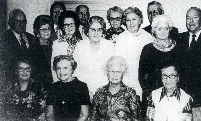 Members of the 1924 class of Lowell High School include (front row, left to right) Helen (Burroughs) Hayden, Ruth (Meyer) Ullrich, Madge (Blachard) Rolston, Mable (Stadt) Bahr, (second row, left to right) Julia (Burger) Ridge, Thelma (Wheeler) Becker, Vera (Powell) Stanley, Lyrrell (Taylor) Miller, Lucy (Dodge) Powell, (third row, left to right) Frank Einspahr, Richard Howkinson, Milton Kenney, Velma Nomanson, Harold Sutton, Ernest Wooldridge.